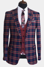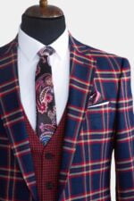Costum bleumarin in carouri slim-fit CM184