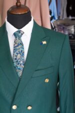 Sacou verde, slim fit, cu doua randuri de nasturi